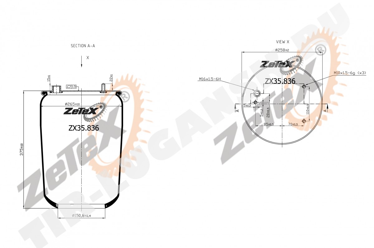 Пневморессора 836M без стакана
