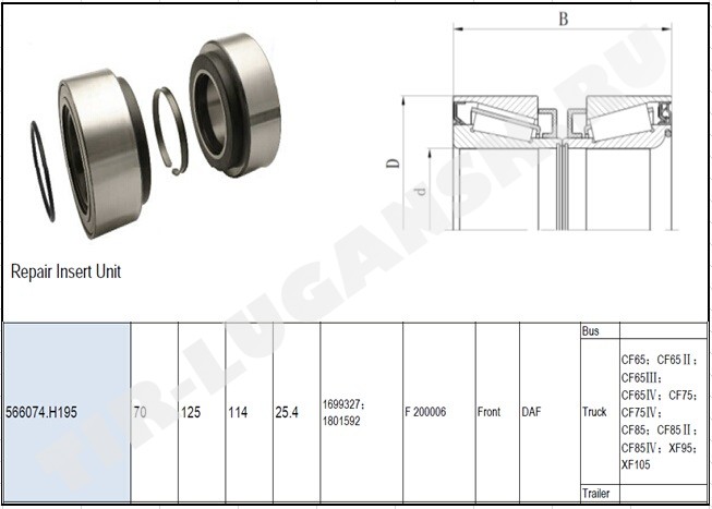 К-т подшипников перед 125*125