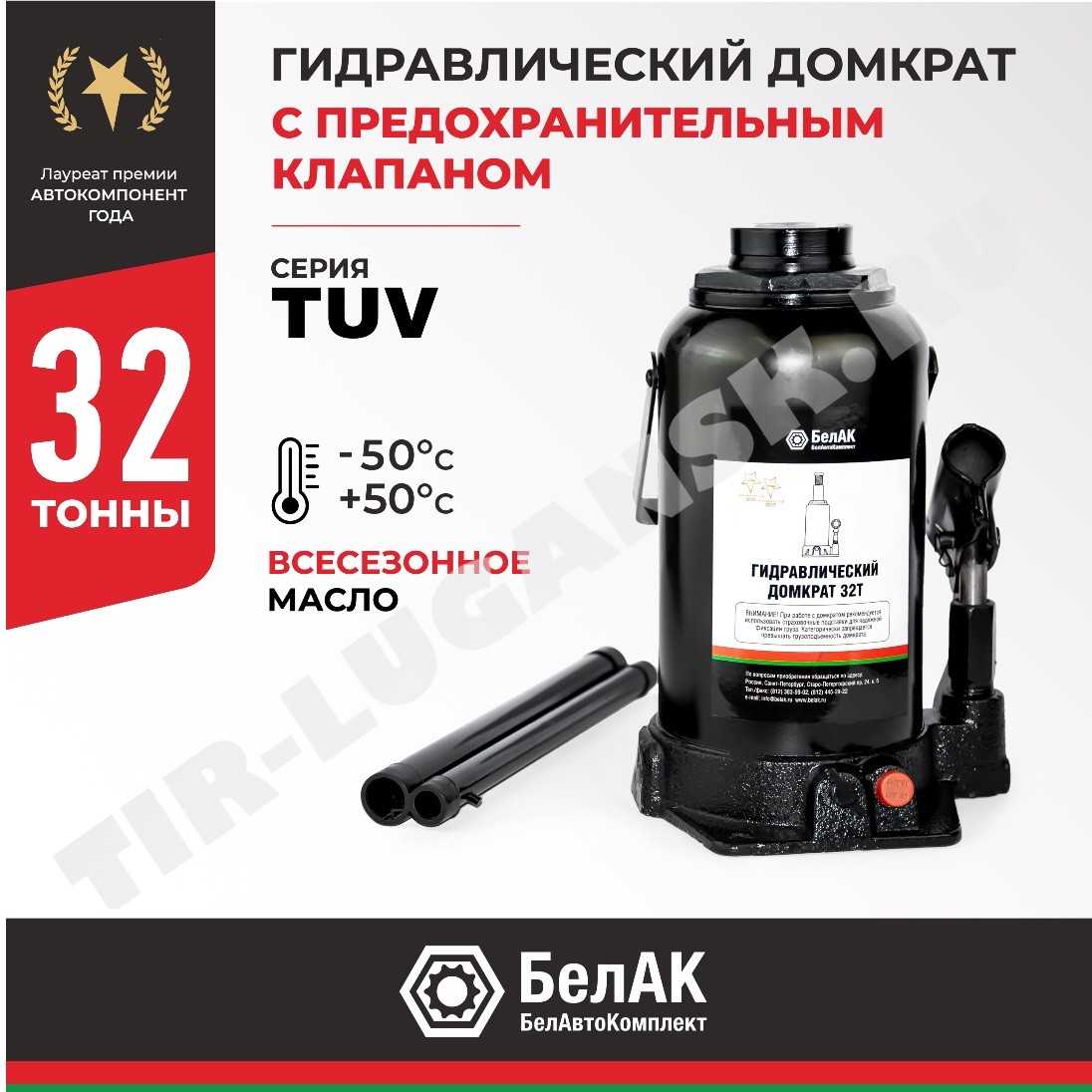 Домкрат бутылочный 32т. TUV, 2 клапана