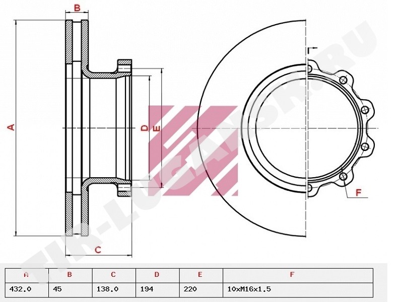 Диск тормозной 432*45
