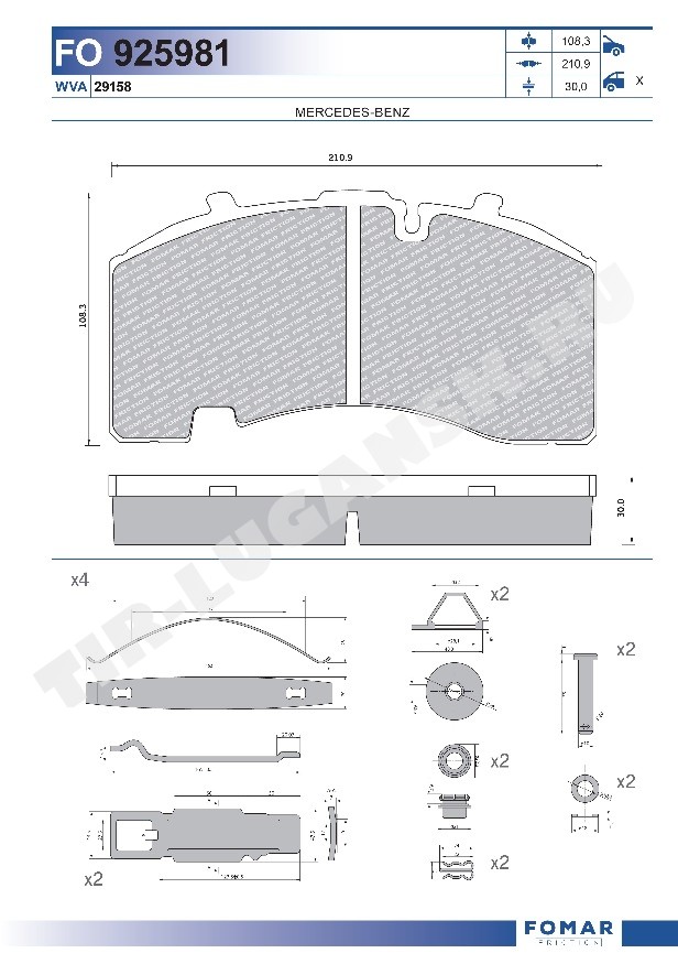 Колодки тормозные 210.9*108*30