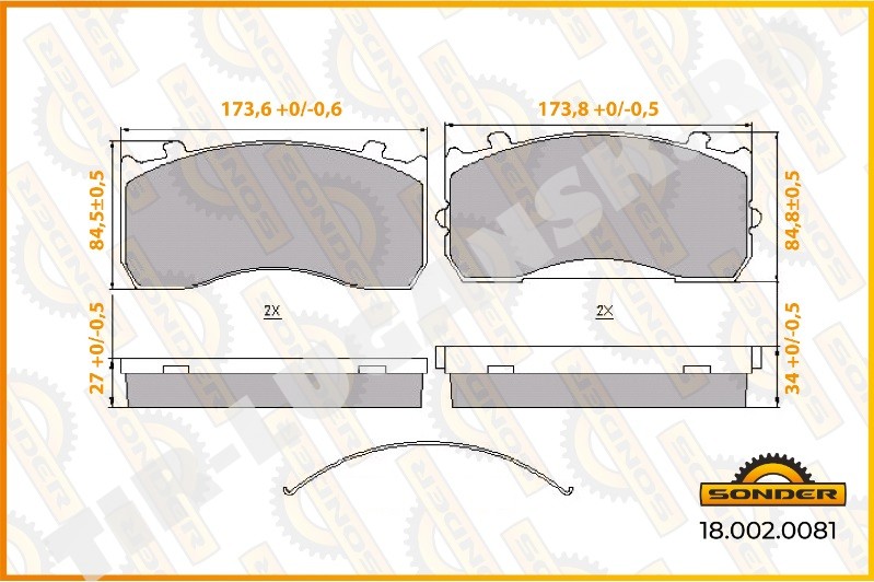 Колодки тормозные 173.60*84*34