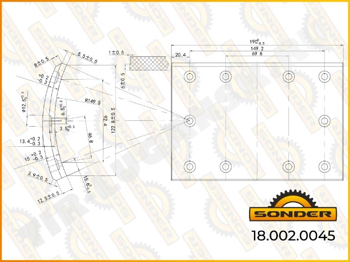 Накладки тормозные D310 158/126*191